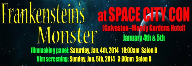 At SpaceCityCon in Moody Hotel and Convention Center in Galveston, Texas First Step Cinematics will be hosting two events. The first is a microbudget filmmaking panel in which we will also discuss some of the historical locations we shot at.The second event is a free for SpaceCityCon ticketed attendees: a screening of our film, Frankenstein’s Monster.